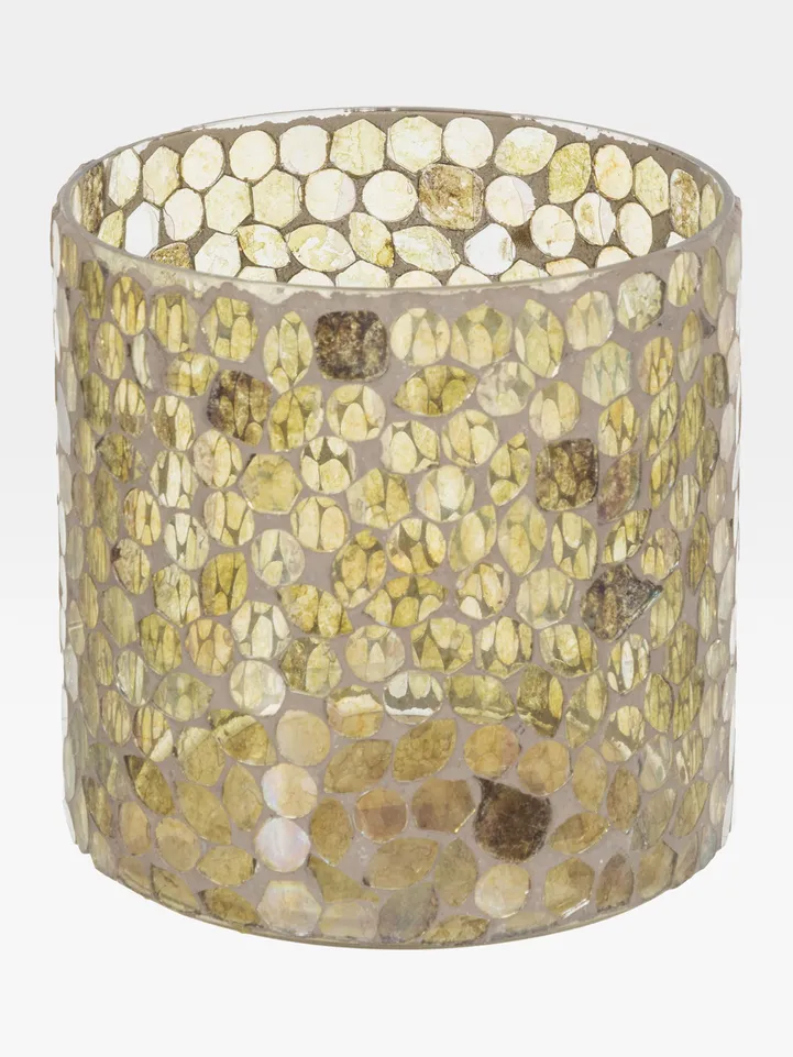 Transform your space with our handcrafted brown mosaic glass tea light holder, a stunning blend of artistry and elegance. Each piece is meticulously created with intricately arranged glass tiles, reflecting light in a soft, luminous glow. The delicate mosaic design adds a touch of sophistication, making it a cosy accent for your living room.