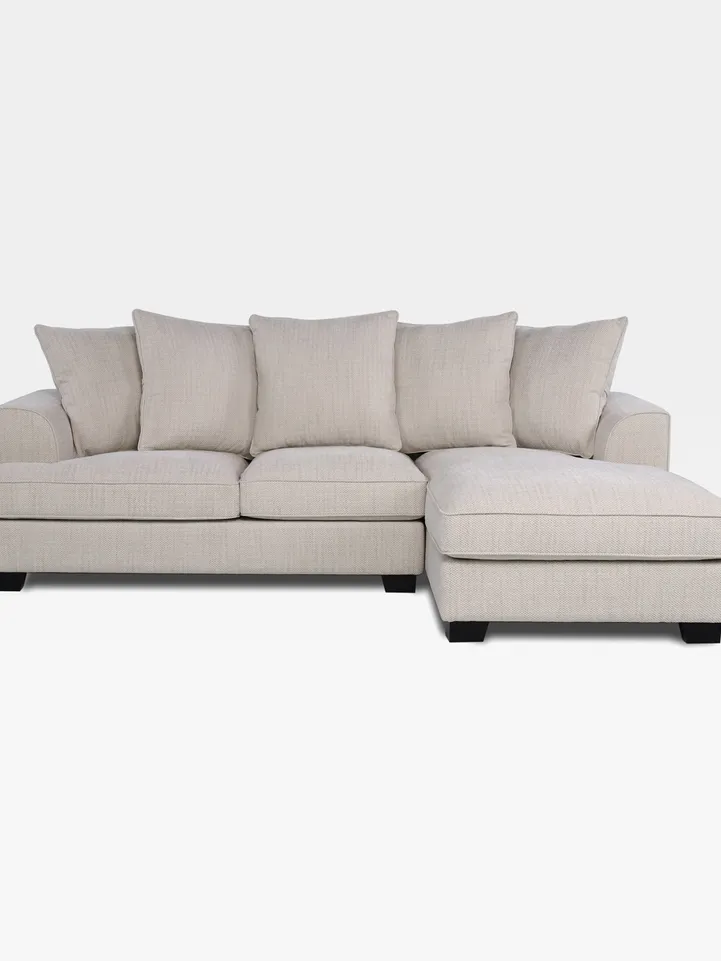 MELBOURNE sofa with chaise presents contemporary sophistication in plush, rich chenille, seamlessly combining comfort with modern design elements, ideal for transforming and enhancing your living room ambiance with timeless elegance.